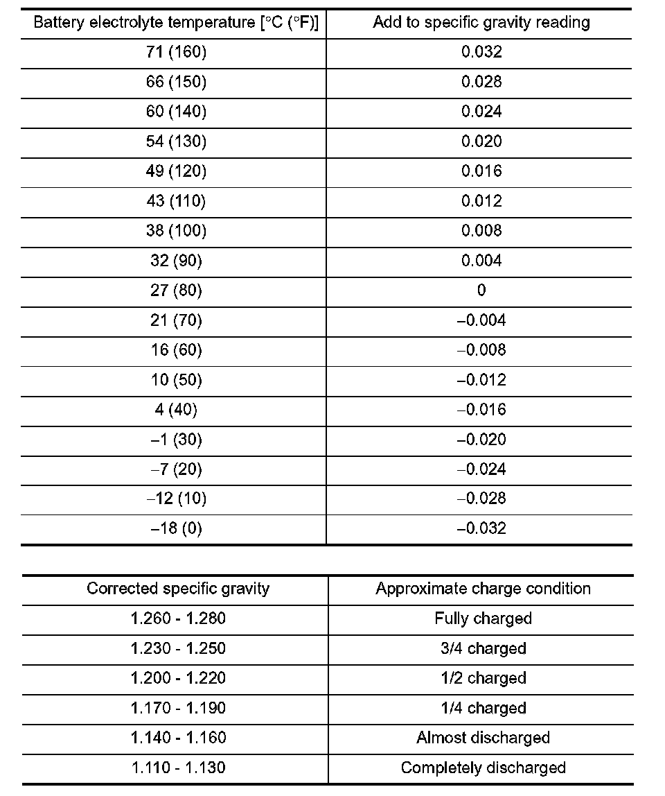 2. Use the chart below to correct your hydrometer reading according to electrolyte temperature.