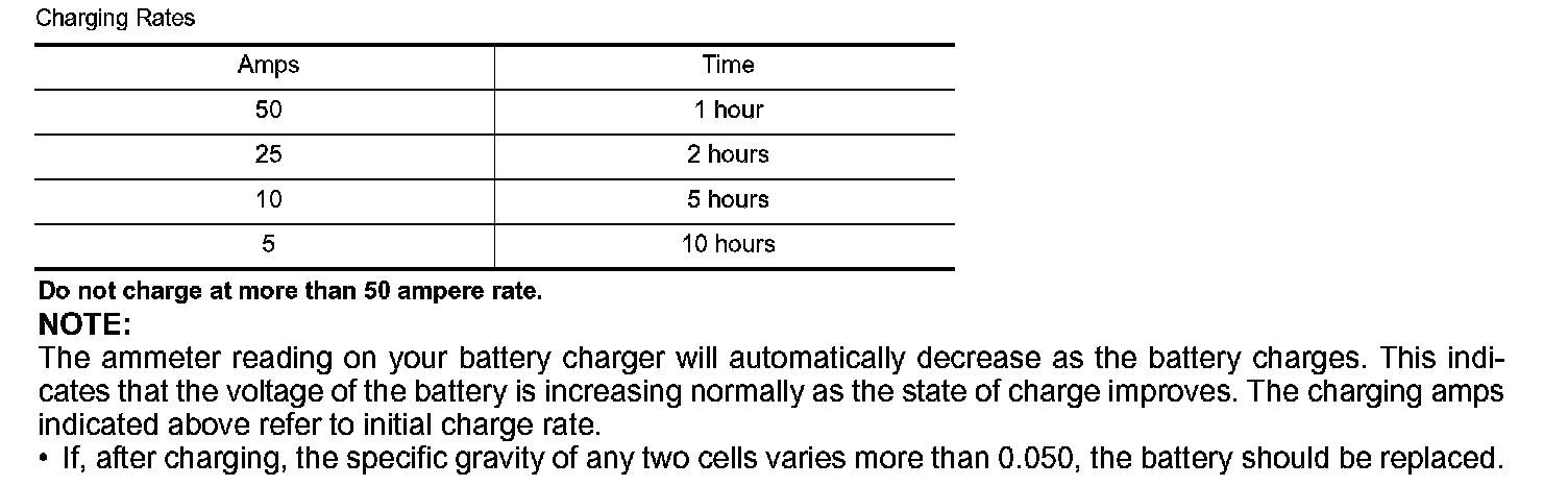 - If battery electrolyte temperature rises above 55 �C (131 �F), stop charging. Always charge battery at a temperature below 55 �C (131 �F).