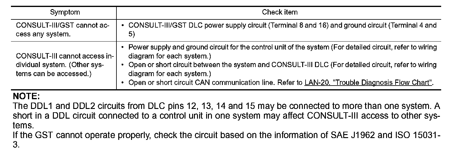 If the CONSULT-III/GST cannot diagnose the system properly, check the following items.