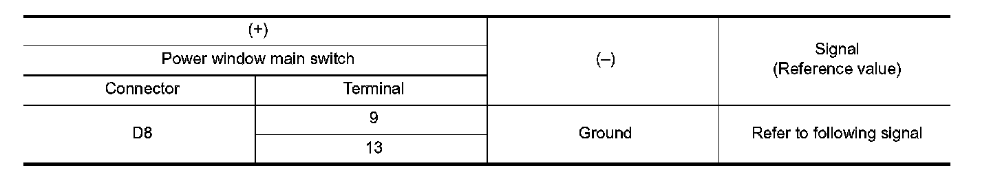 2. Check signal between power window main switch harness connector and ground with oscilloscope.