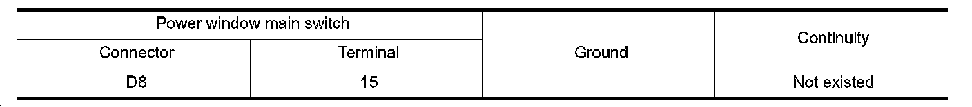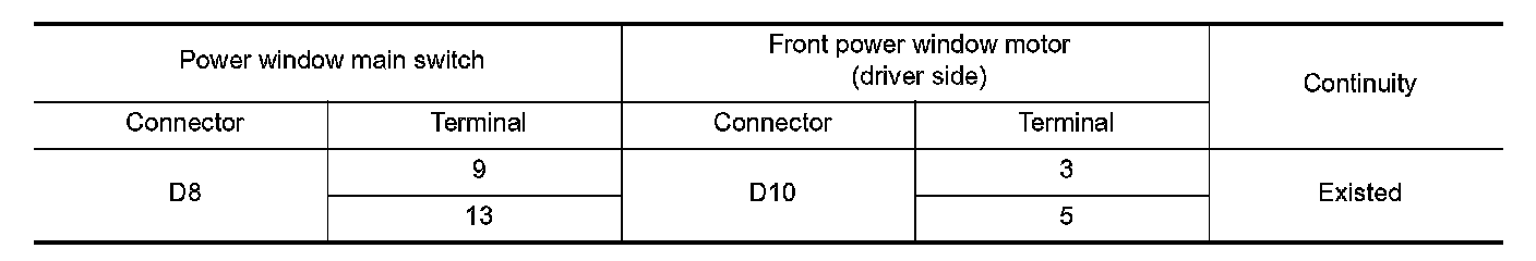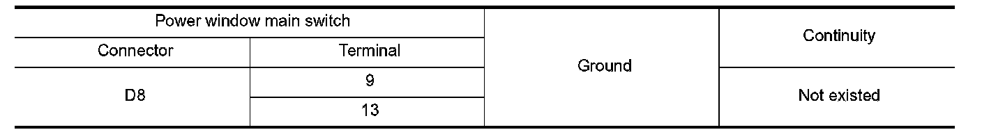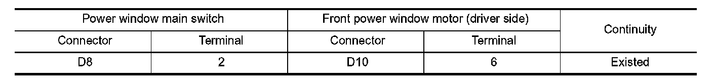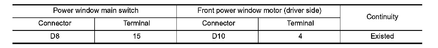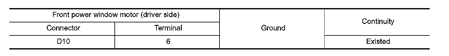 2. Check continuity between front power window motor (driver side) harness connector and ground.