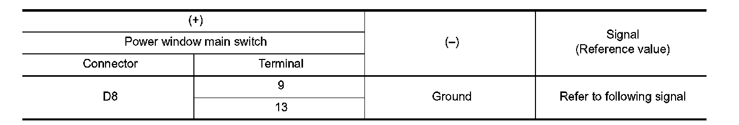2. Check signal between power window main switch harness connector and ground with oscilloscope.