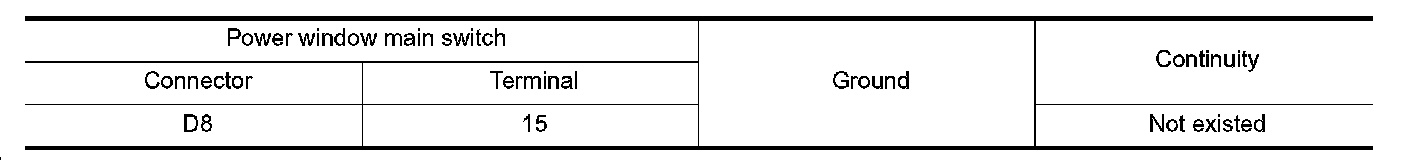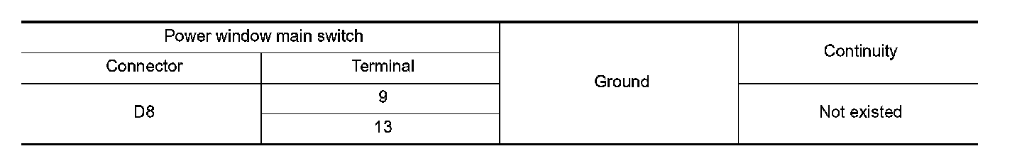 4. Check continuity between power window main switch harness connector and ground.