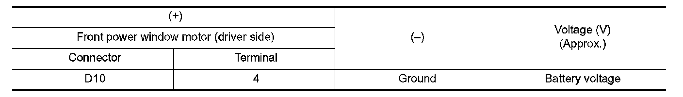 3. Check voltage between front power window motor (driver side) harness connector and ground.
