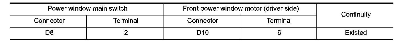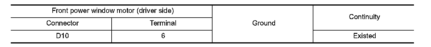 2. Check continuity between front power window motor (driver side) harness connector and ground.