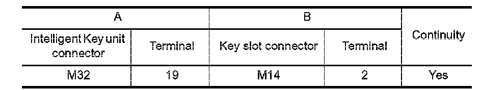 NG - Repair or replace harness between Intelligent Key unit and key slot.