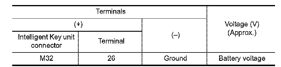 Check voltage between Intelligent Key unit connector and ground.