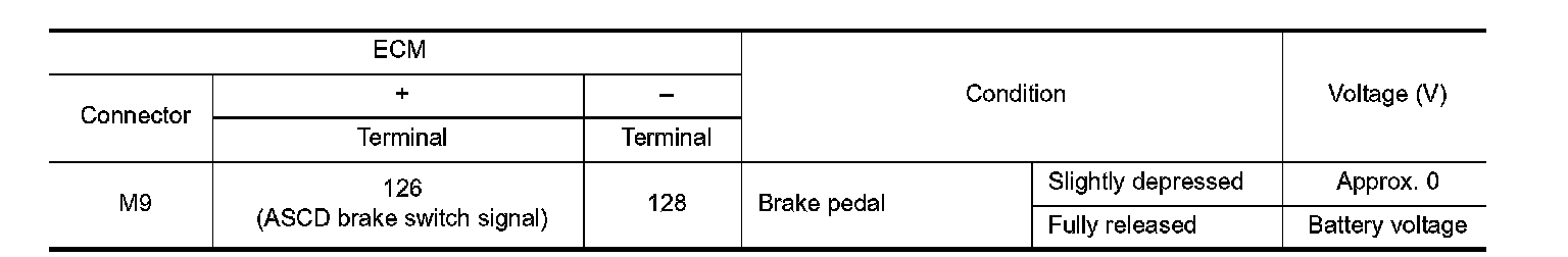 2. Check the voltage between ECM harness connector terminals as per the following.