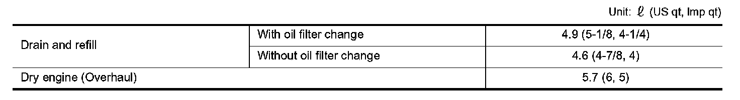 ENGINE OIL CAPACITY (APPROXIMATE)
