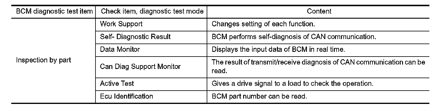 CONSULT-III can display each diagnostic item using the diagnostic test modes shown following.