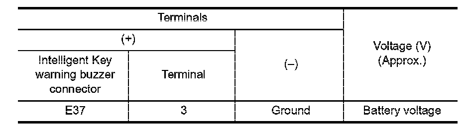3. Check voltage between Intelligent Key warning buzzer connector and ground.