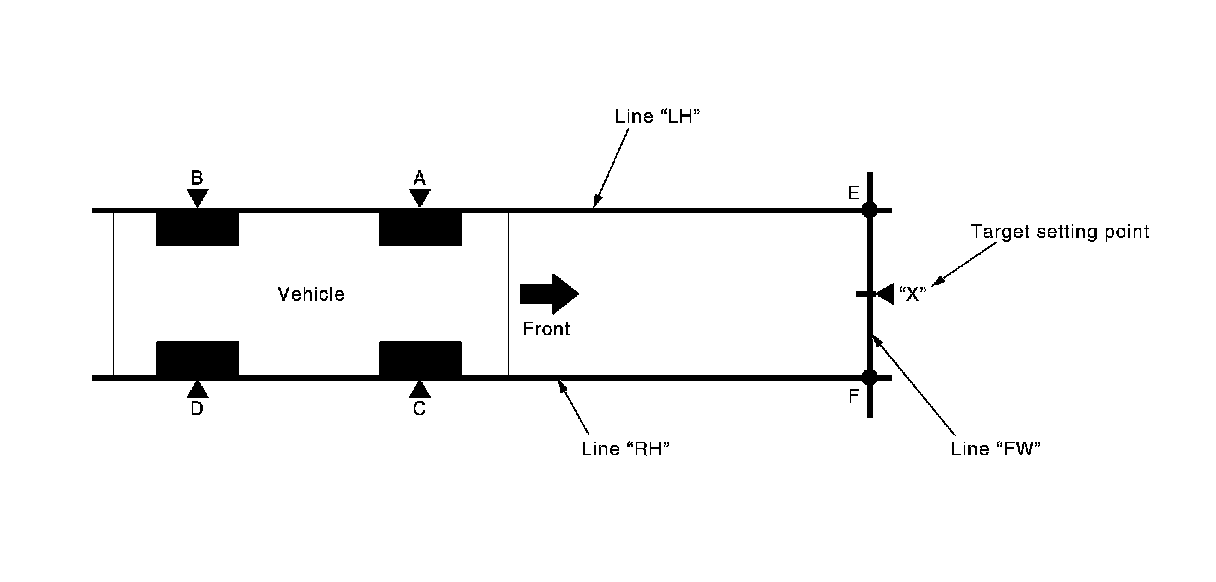 6. Draw line "FW" passing through the points "E" and "F" on the front side of vehicle.