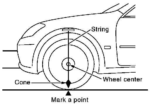 Hang a string with a cone from the fender so as to pass through the center of wheel, and then mark a point at the center of the lateral surface of the wheel.