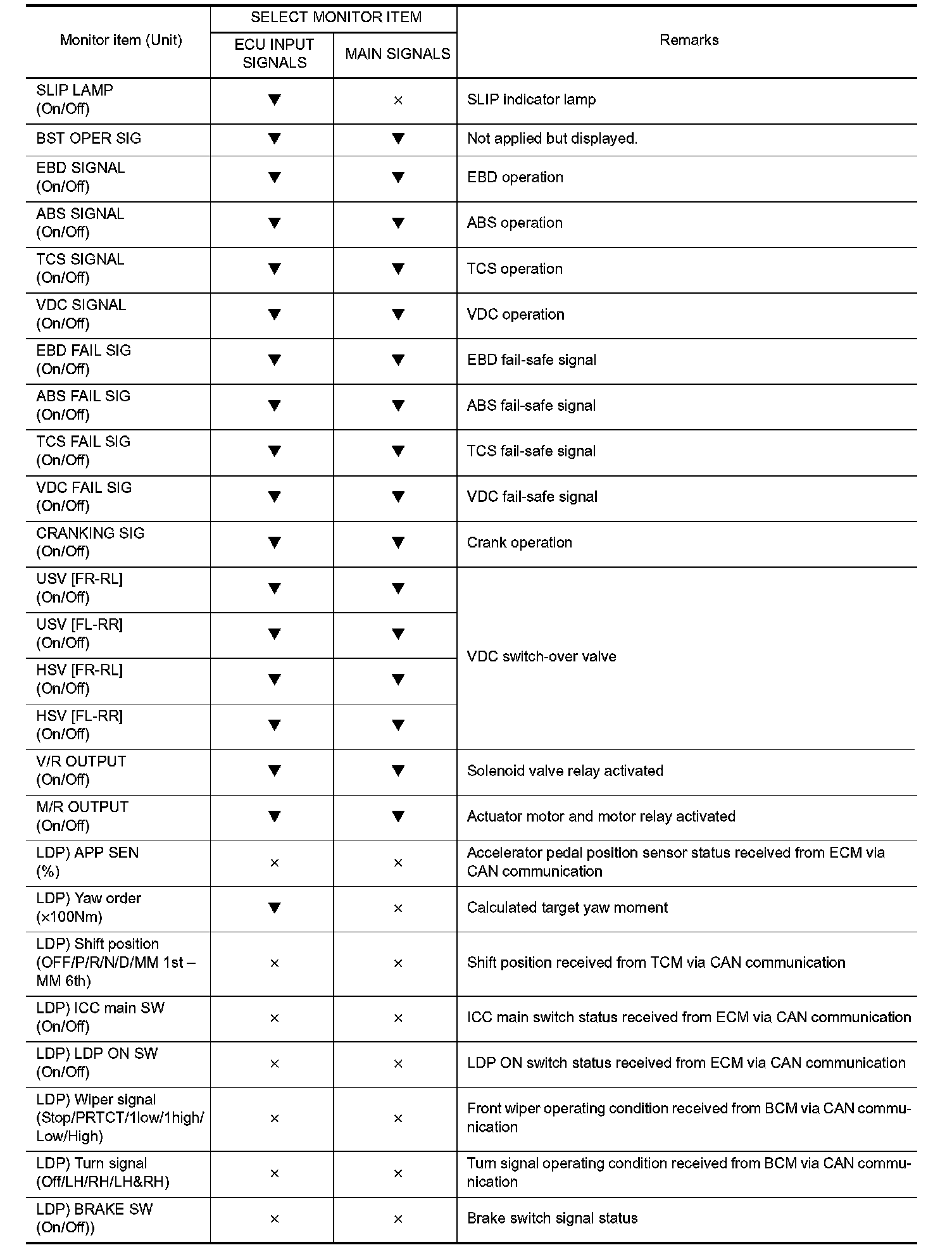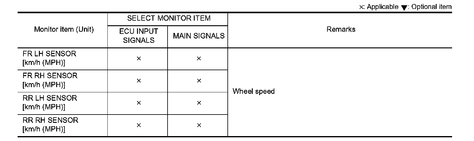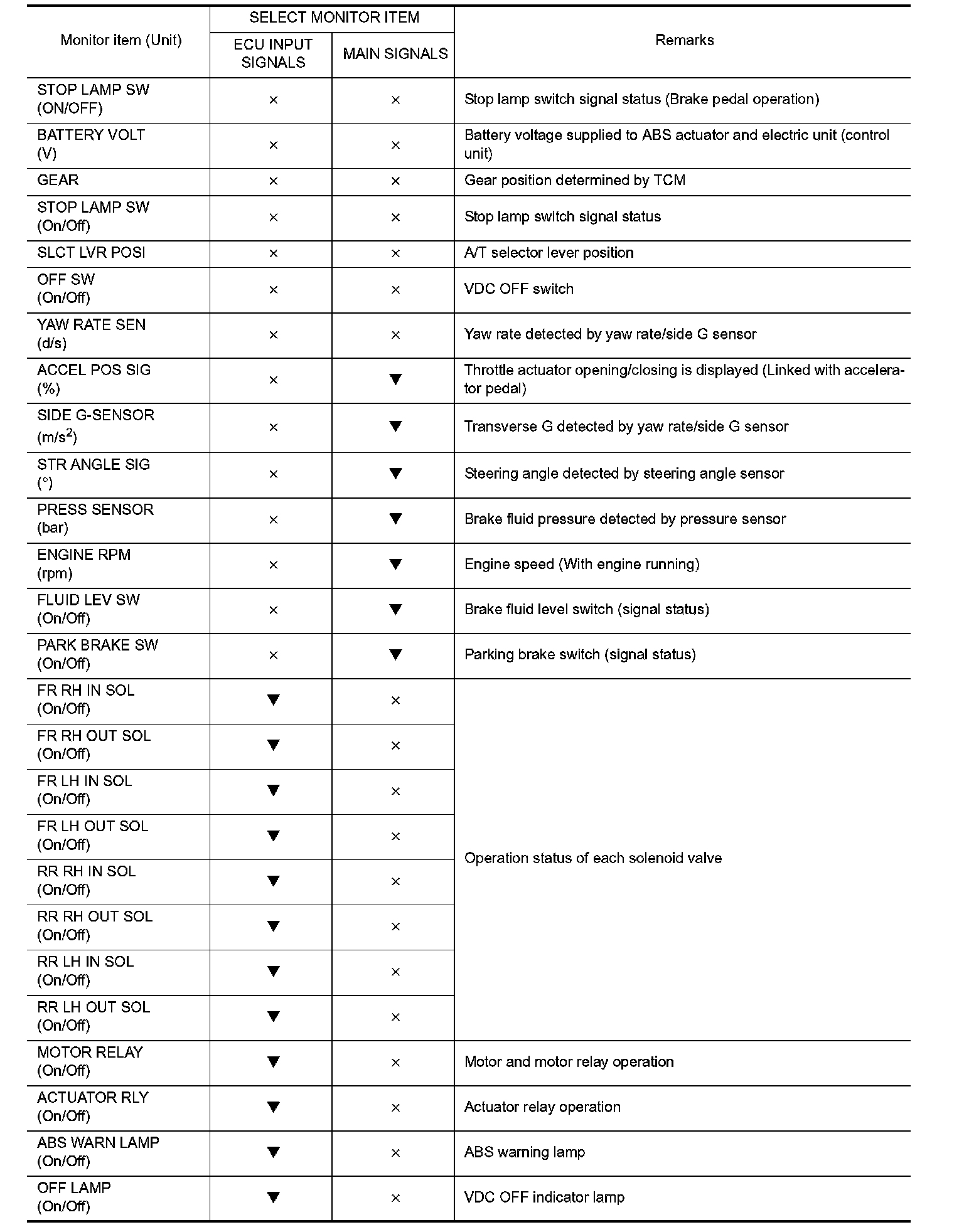 - The active test cannot be started when ABS warning lamp, VDC OFF indicator lamp, SLIP indicator lamp and brake warning lamp are ON.