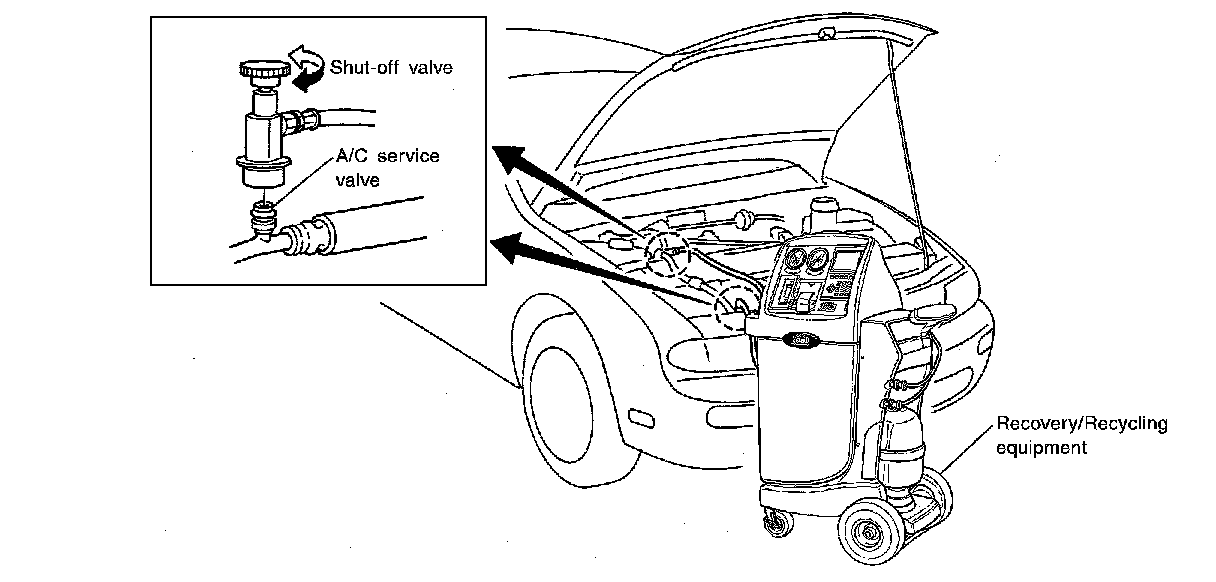 Remove HFC-134a (R-134a) from A/C system using certified service equipment meeting requirements of SAE J-2210 [HFC-134a (R-134a) recycling equipment] or J-2209 [HFC-134a (R-134a) recovery equipment]. Ventilate work area before resuming service if accidental system discharge occurs. Additional health and safety information may be obtained from refrigerant and lubricant manufacturers.