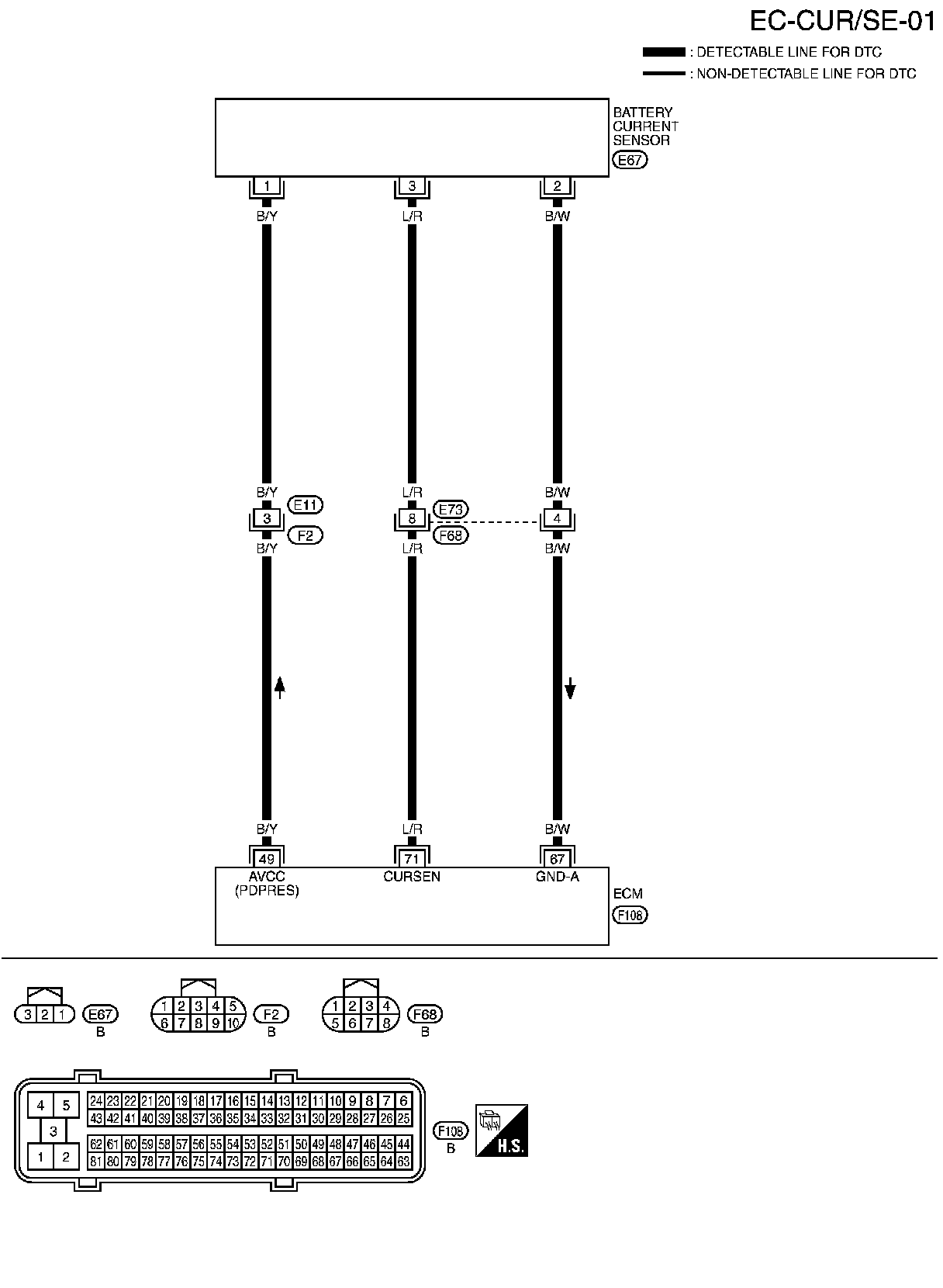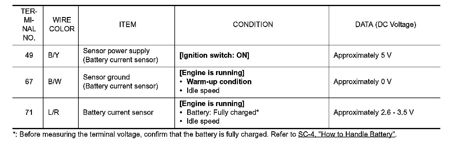 Never use ECM ground terminals when measuring input/output voltage. Doing so may result in damage to the ECM's transistor. Use a ground other than ECM terminals, such as the ground.