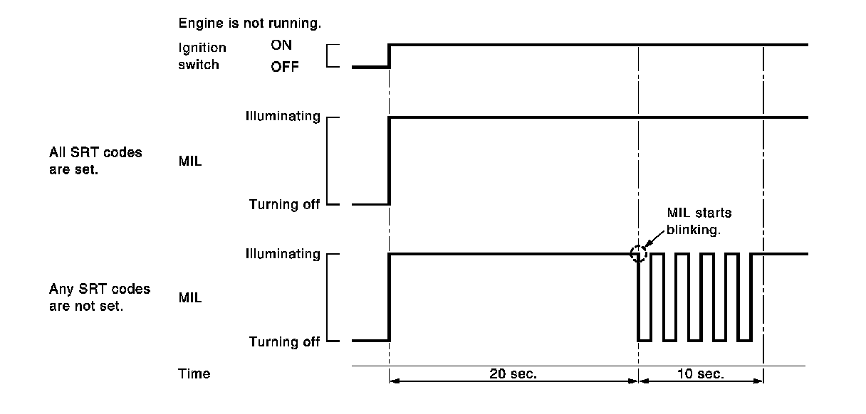- When any SRT codes are not set, MIL will blink periodically for 10 seconds.