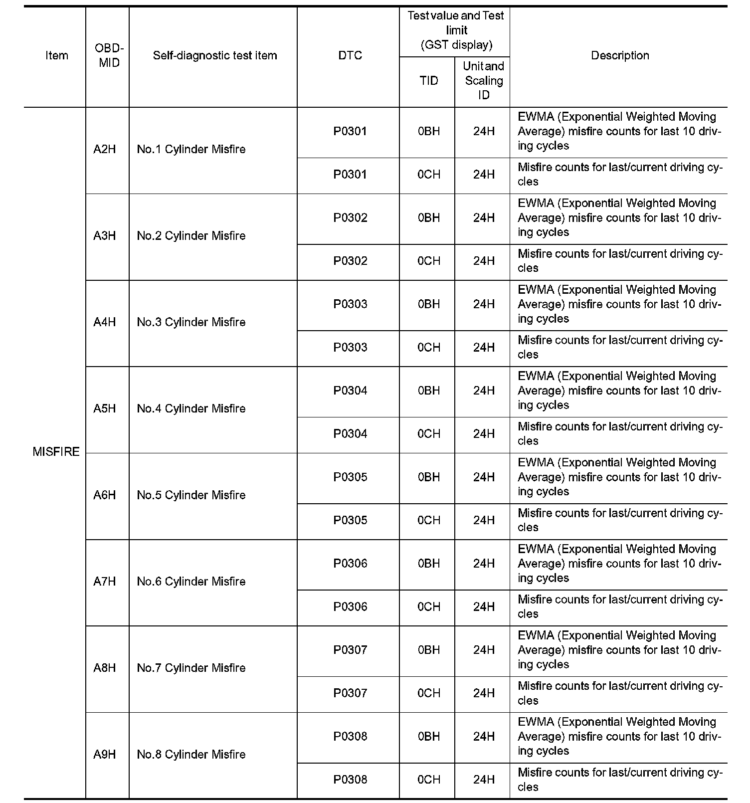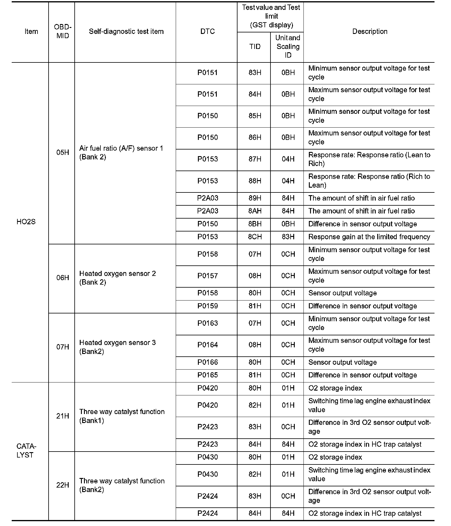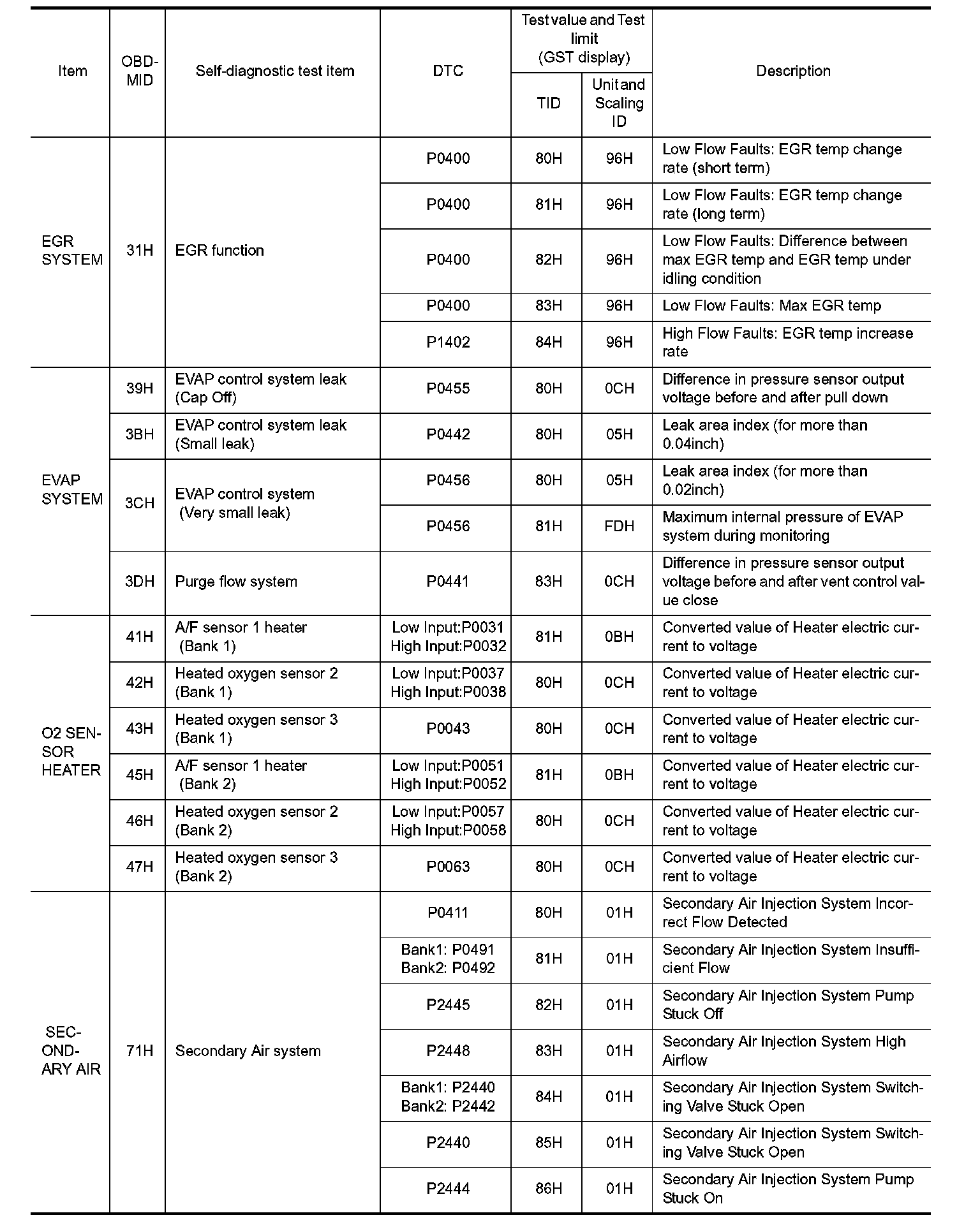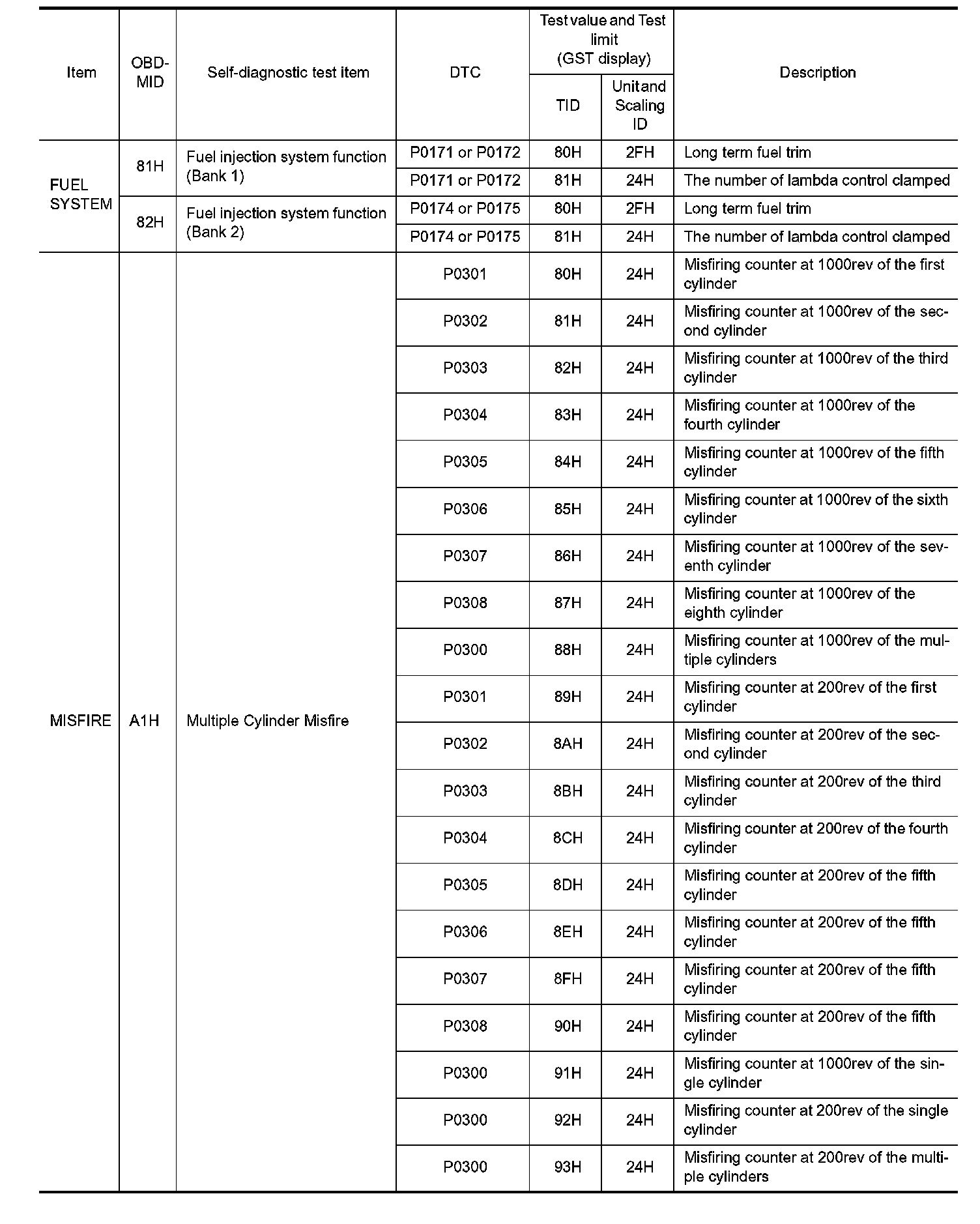 These data (test value and test limit) are specified by On Board Monitor ID(OBDMID), Test ID (TID), Unit and