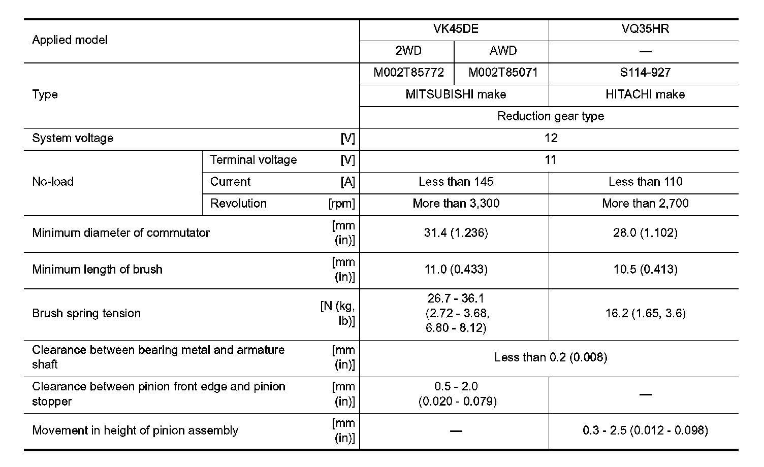 Starter Motor: Specifications