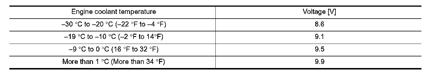 MINIMUM SPECIFICATION OF CRANKING VOLTAGE REFERENCING COOLANT TEMPERATURE