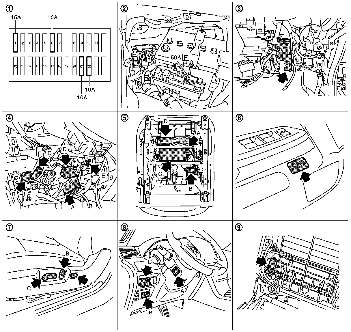 Component Parts and Harness Connector Location