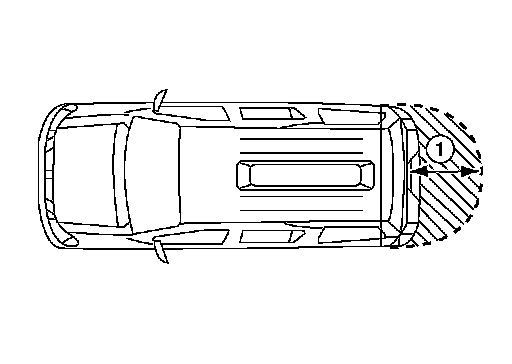 The outside key antenna detection area of back door open function is in the range of approximately 80 cm (31.50 in) surrounding back door opener request switch (1). However, this operating range depends on the ambient conditions.