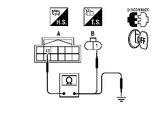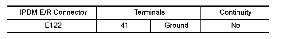4. Check continuity between IPDM E/R connector (A) E122 terminal 41 and ground.