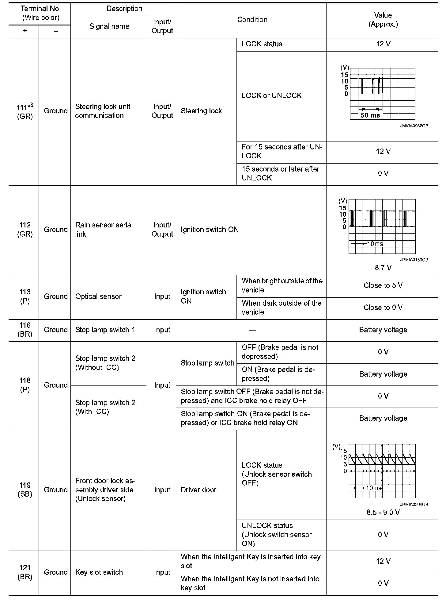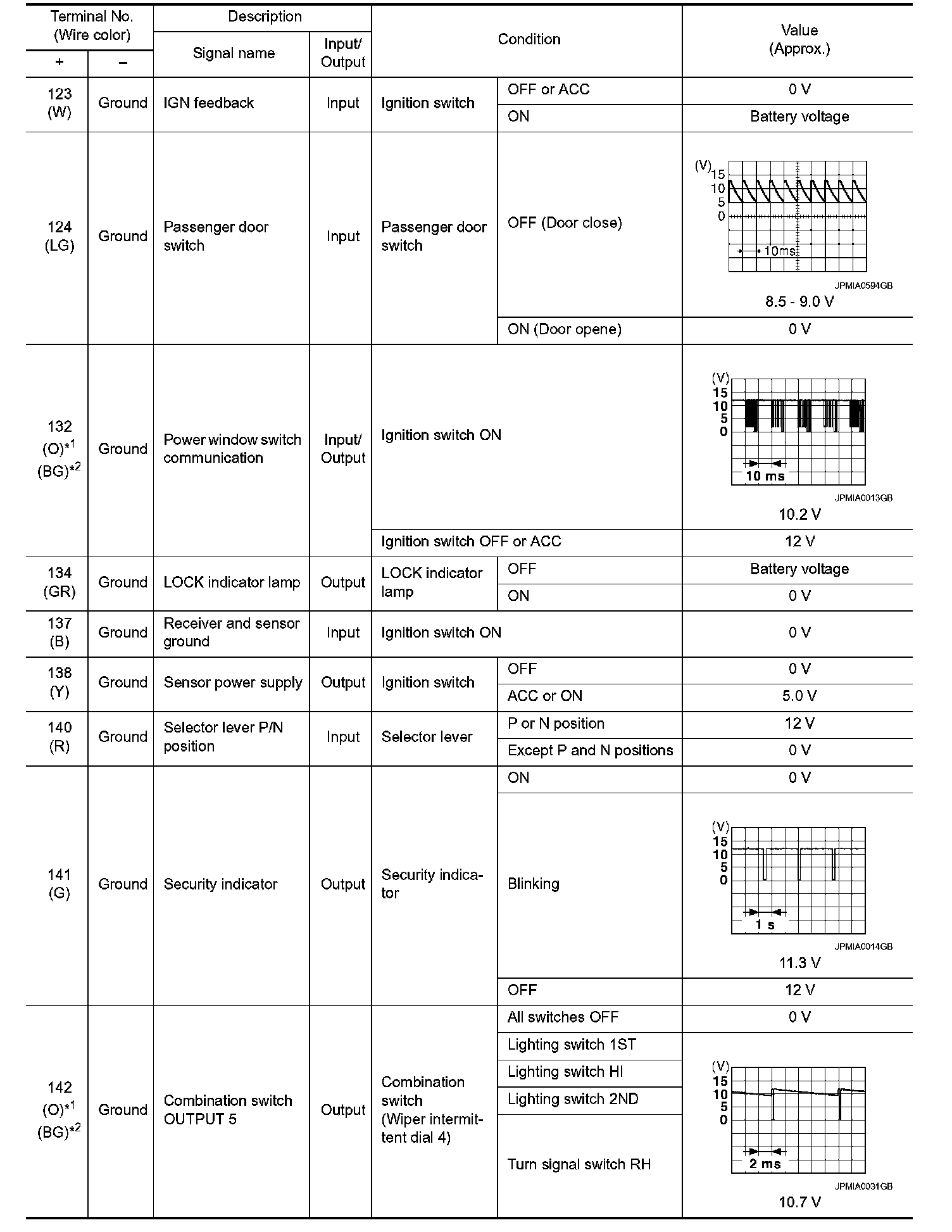 Pinout Values and Diagnostic Parameters