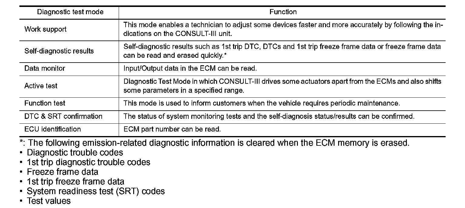 *: The following emission-related diagnostic information is cleared when the ECM memory is erased.