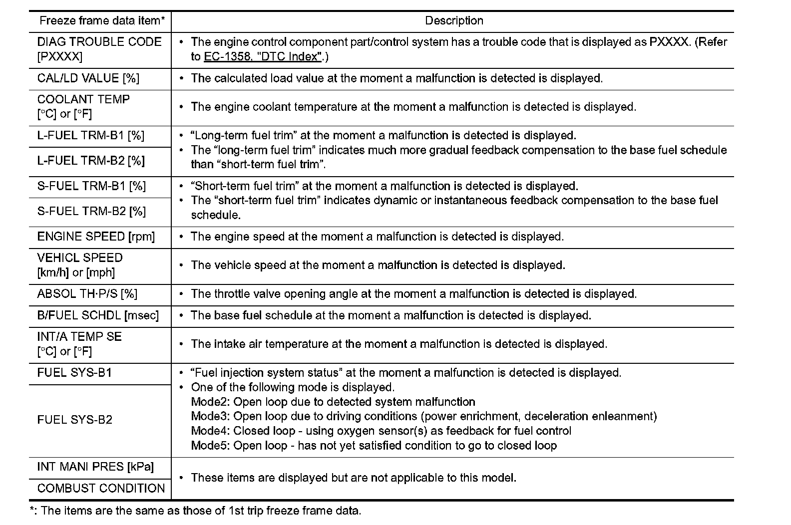 Freeze Frame Data and 1st Trip Freeze Frame Data
