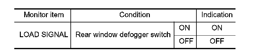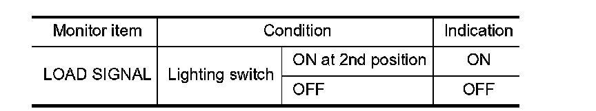 3. Select "LOAD SIGNAL" and check indication under the following conditions.
