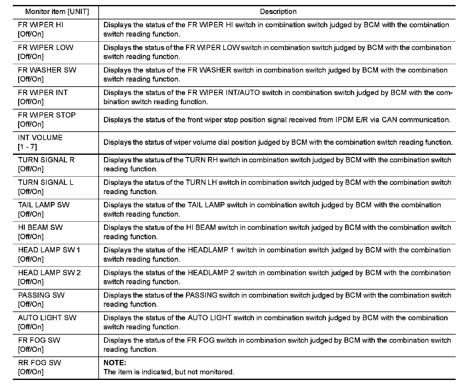 COMB SW : CONSULT-III Function (BCM - COMB SW)