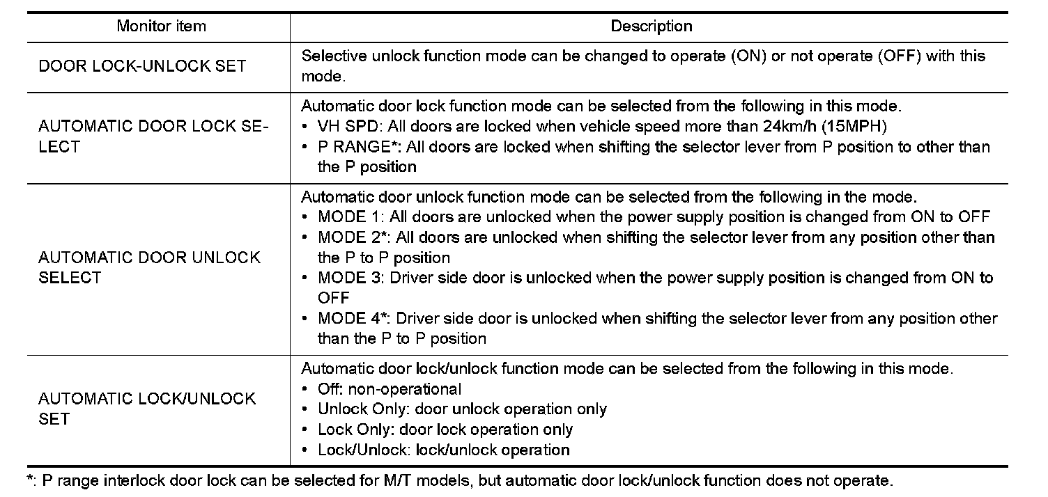 CONSULT-III performs the following functions via CAN communication with BCM.