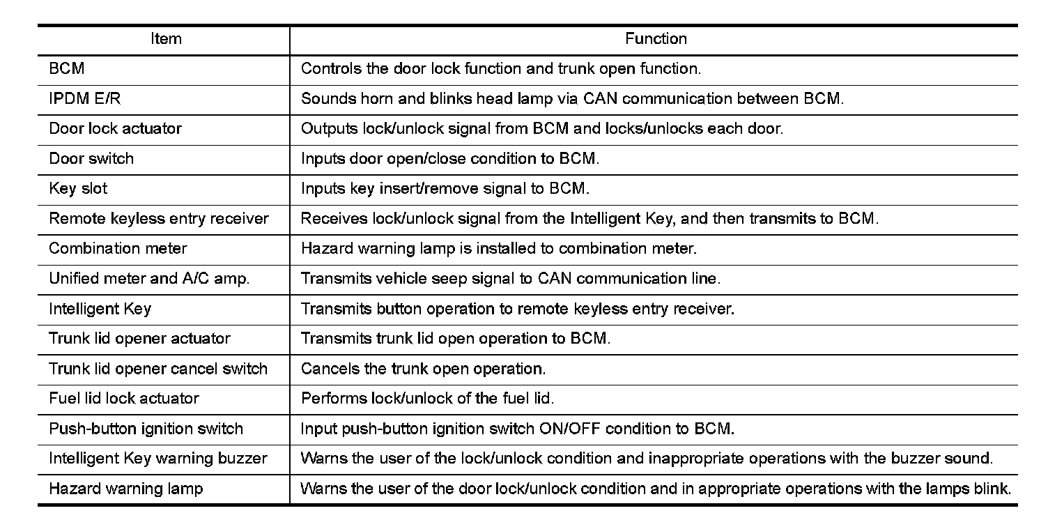 REMOTE KEYLESS ENTRY FUNCTION : Component Description