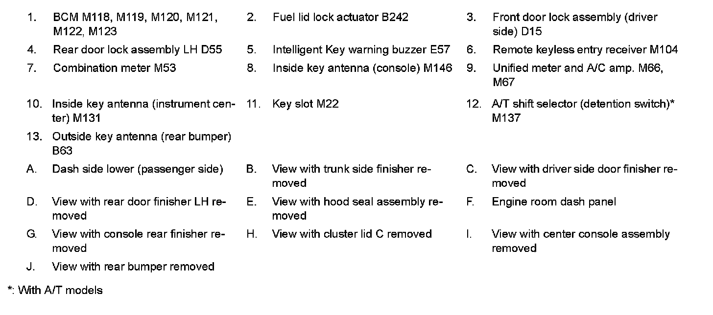DOOR LOCK FUNCTION : Component Parts Location
