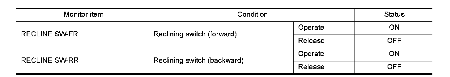 2. Select "RECLN SW-FR", "RECLN SW-RR" in "Data monitor" mode using CONSULT-III.