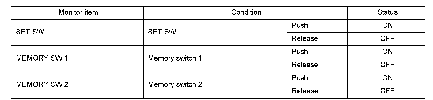 3. Check seat memory switch signal under the following conditions.