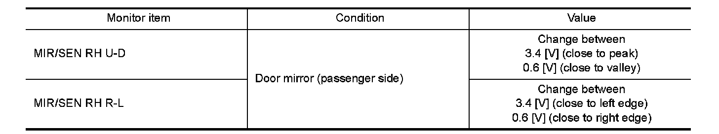 3. Check the mirror sensor (passenger side) signal under the following conditions.
