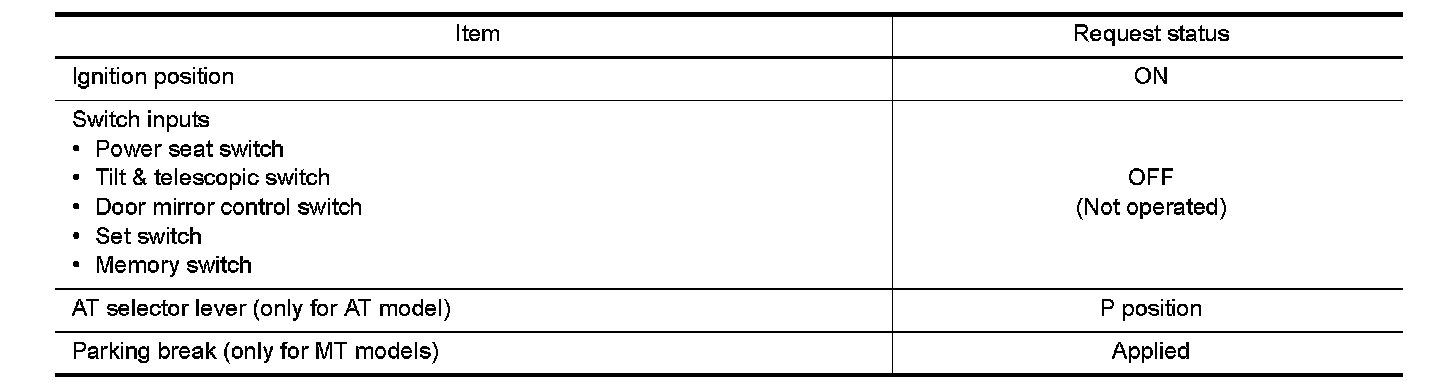 Satisfy all of the following items. The memory function is not performed if these items are not satisfied.