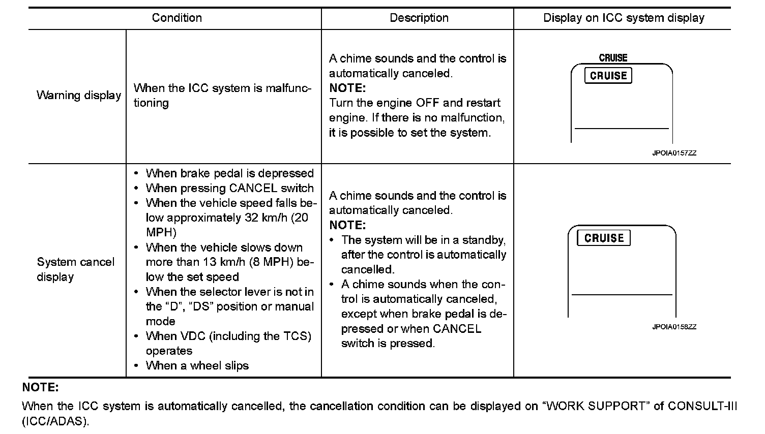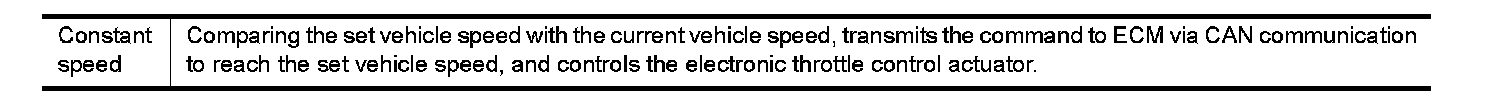 In the conventional (fixed speed) cruise control mode, a warning chime does not sound to warn driver if own vehicle are too close to the vehicle ahead, as neither the presence of the vehicle ahead nor the vehicle-to-vehicle distance is detected.