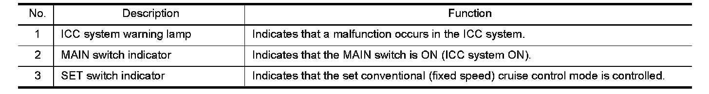 After hold the MAIN switch ON for longer than approximately 1.5 seconds, the ICC system display goes out.