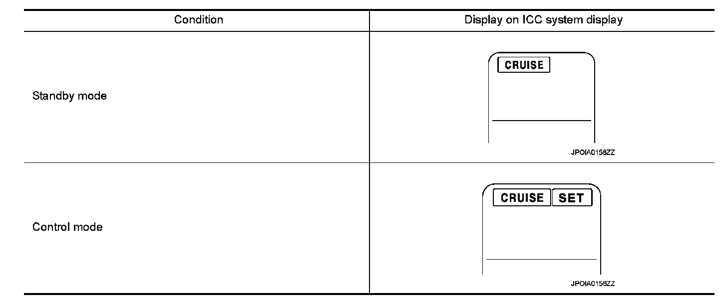 When pushing the MAIN switch ON, the ICC system display and the MAIN switch indicator are displayed on the information display.