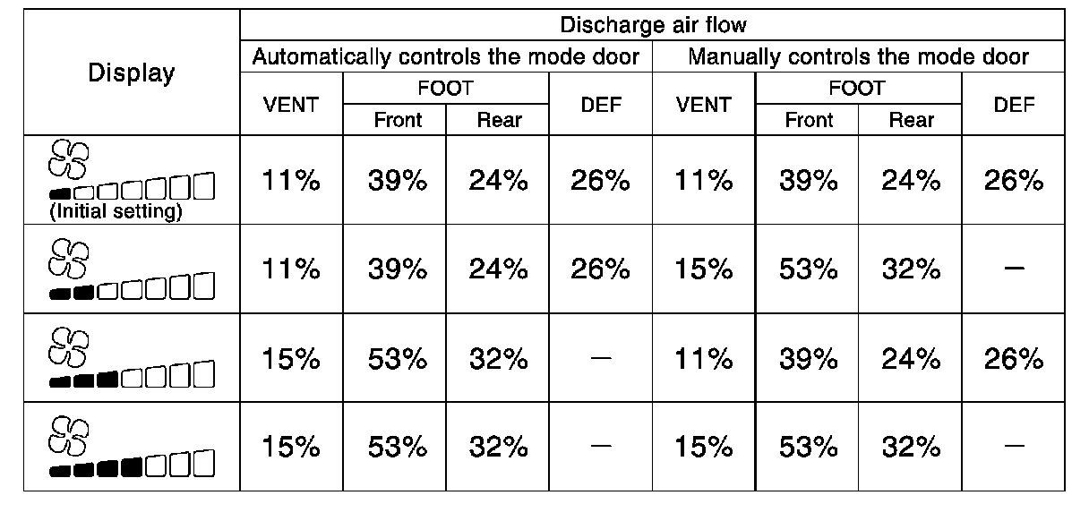 When battery cable is disconnected or battery voltage is below 10 V, trimmer operation is canceled. Air distribution ratio set becomes that of initial condition.
