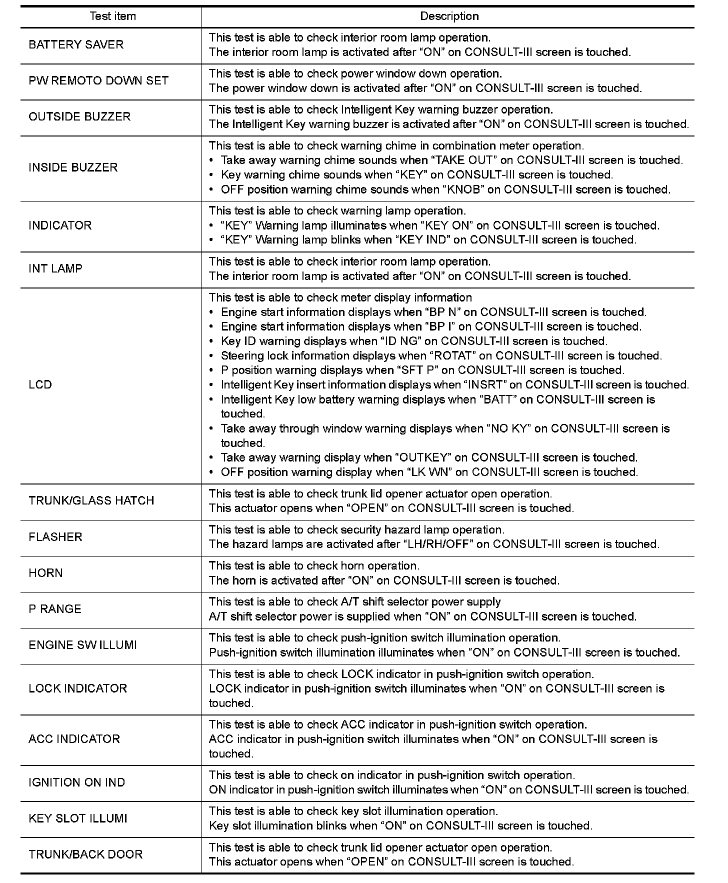 INTELLIGENT KEY : CONSULT-III Function (