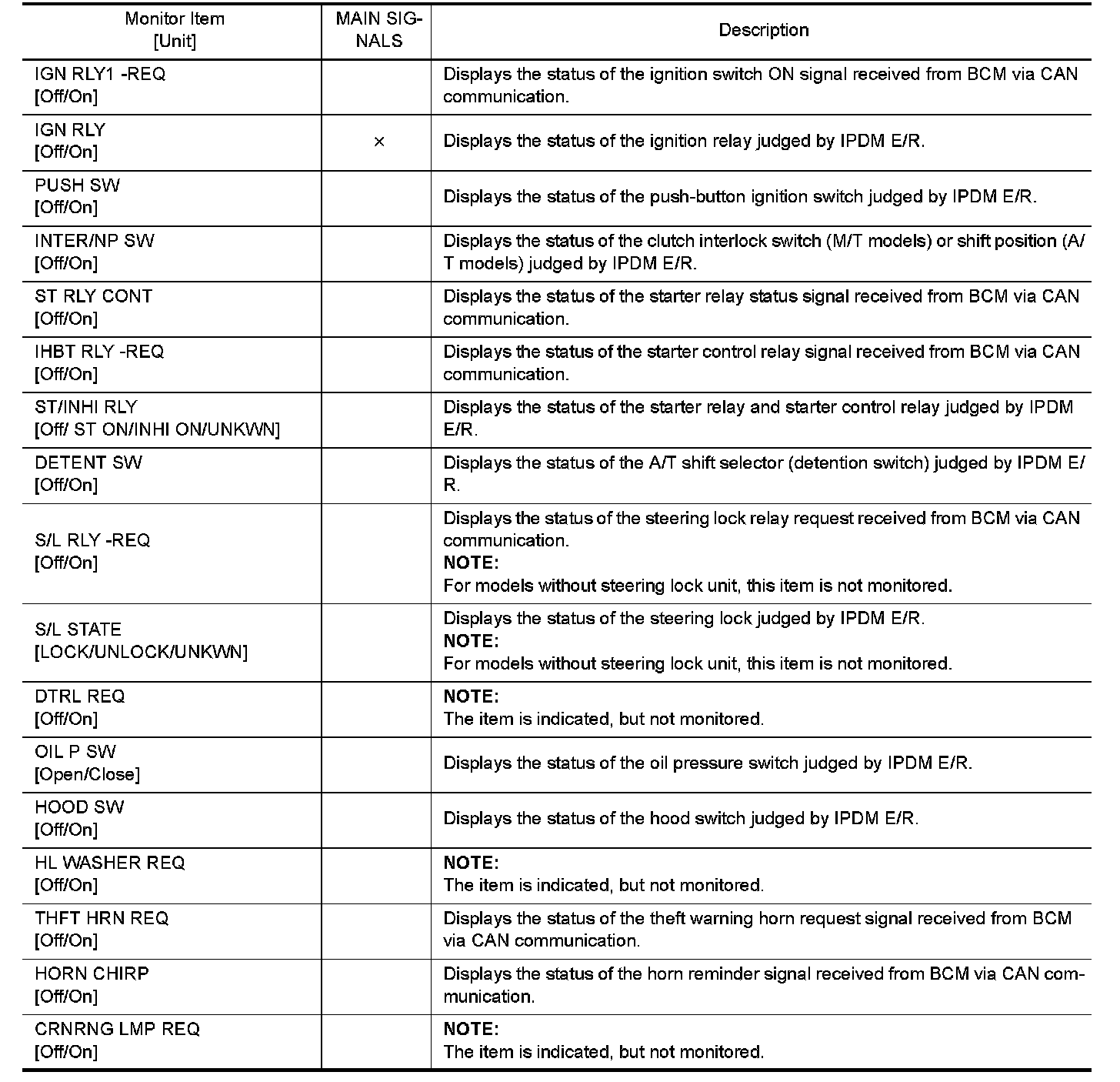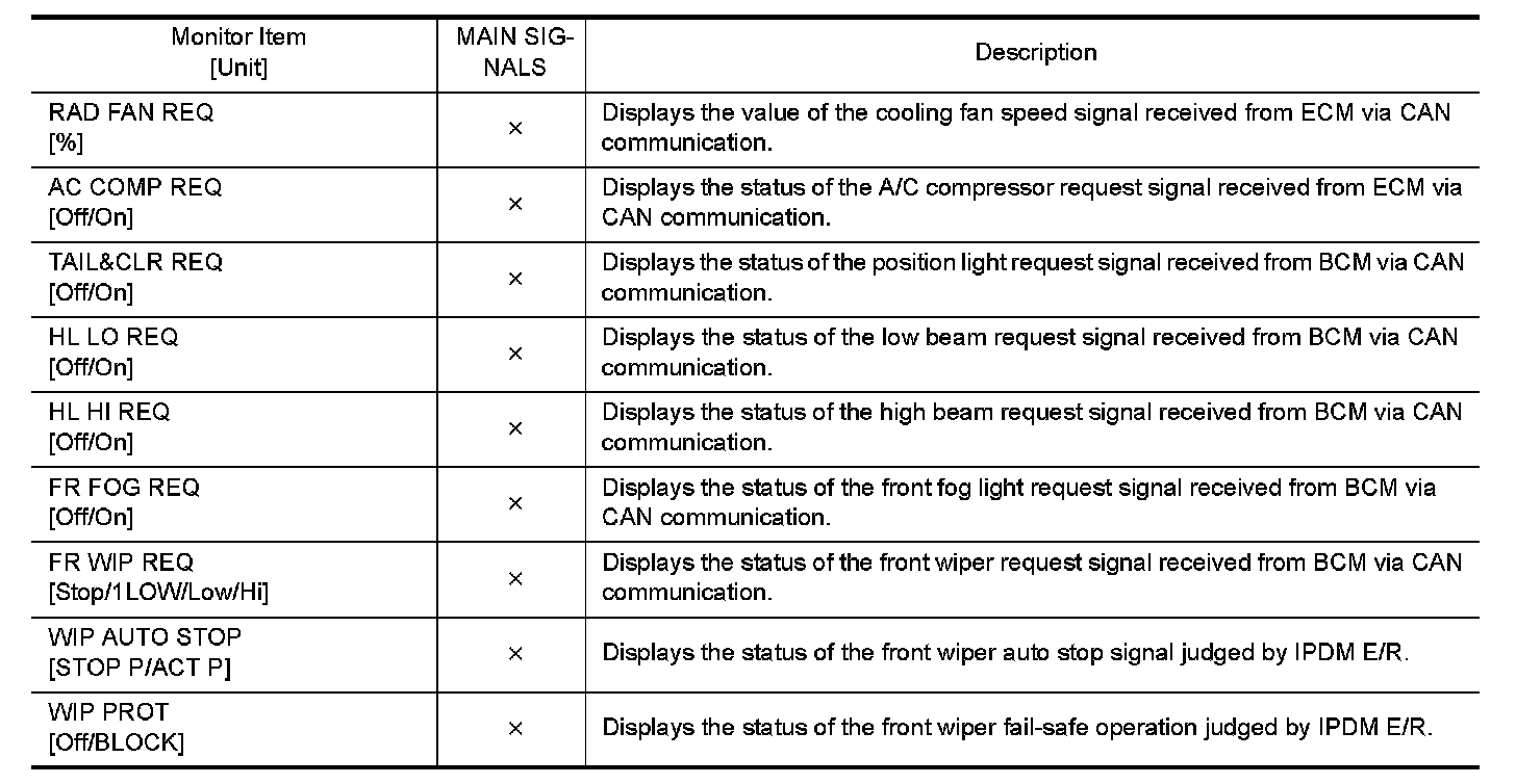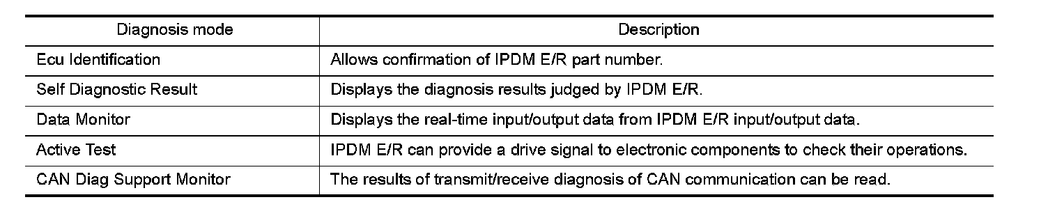 CONSULT-III performs the following functions via CAN communication with IPDM E/R.