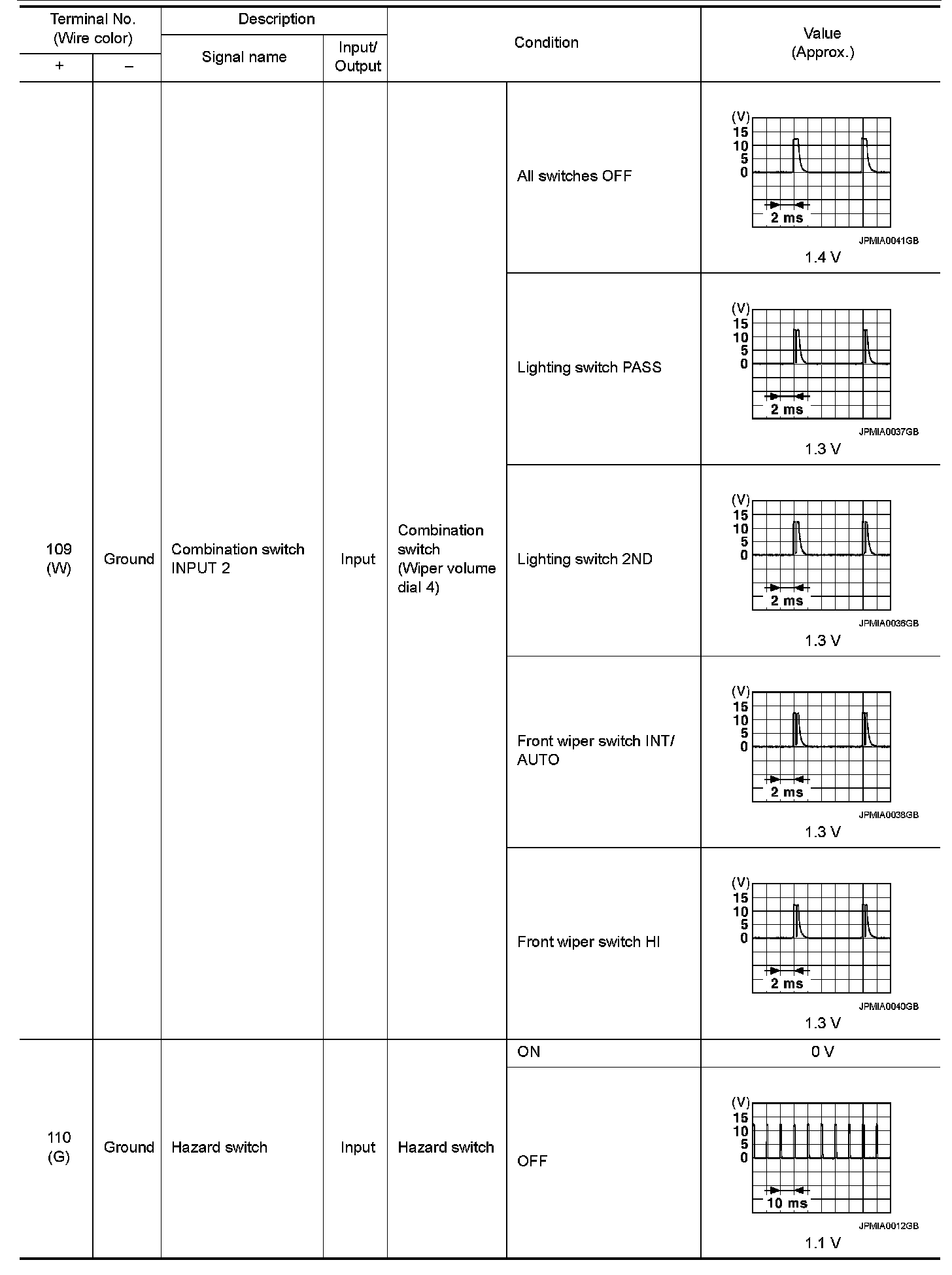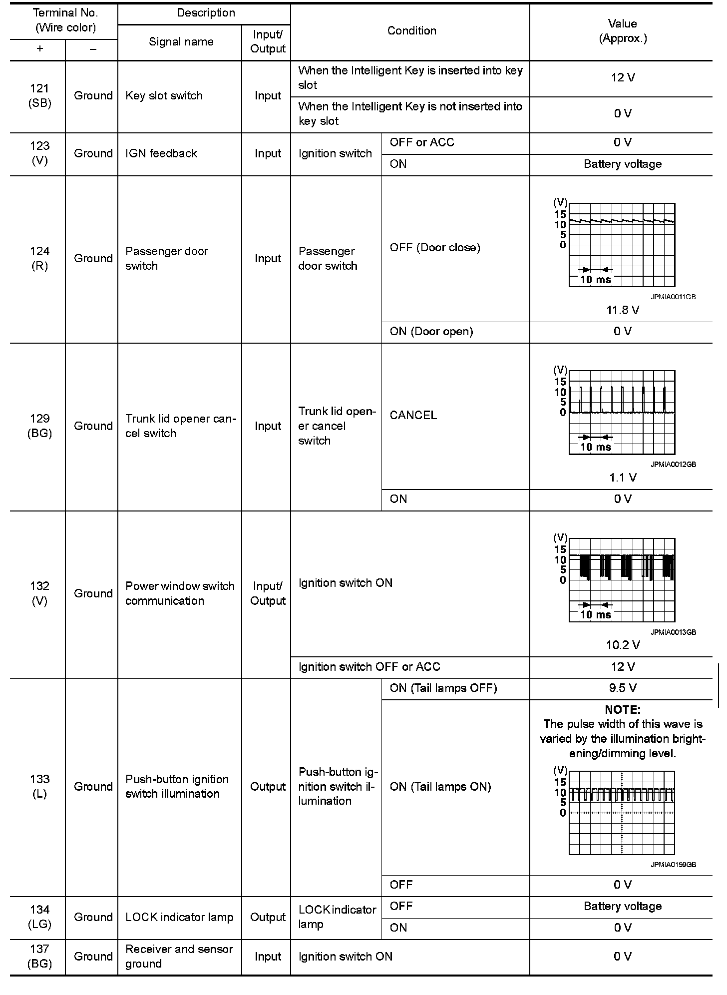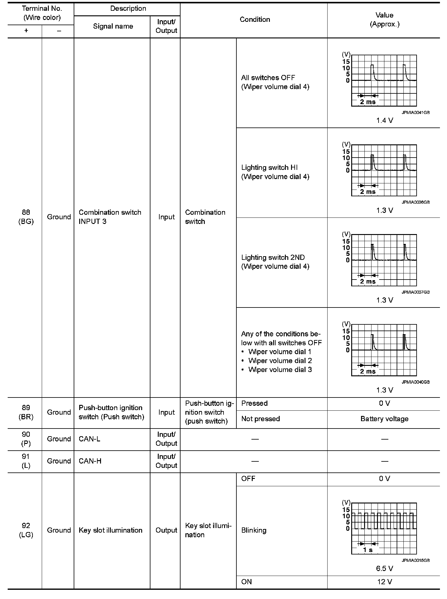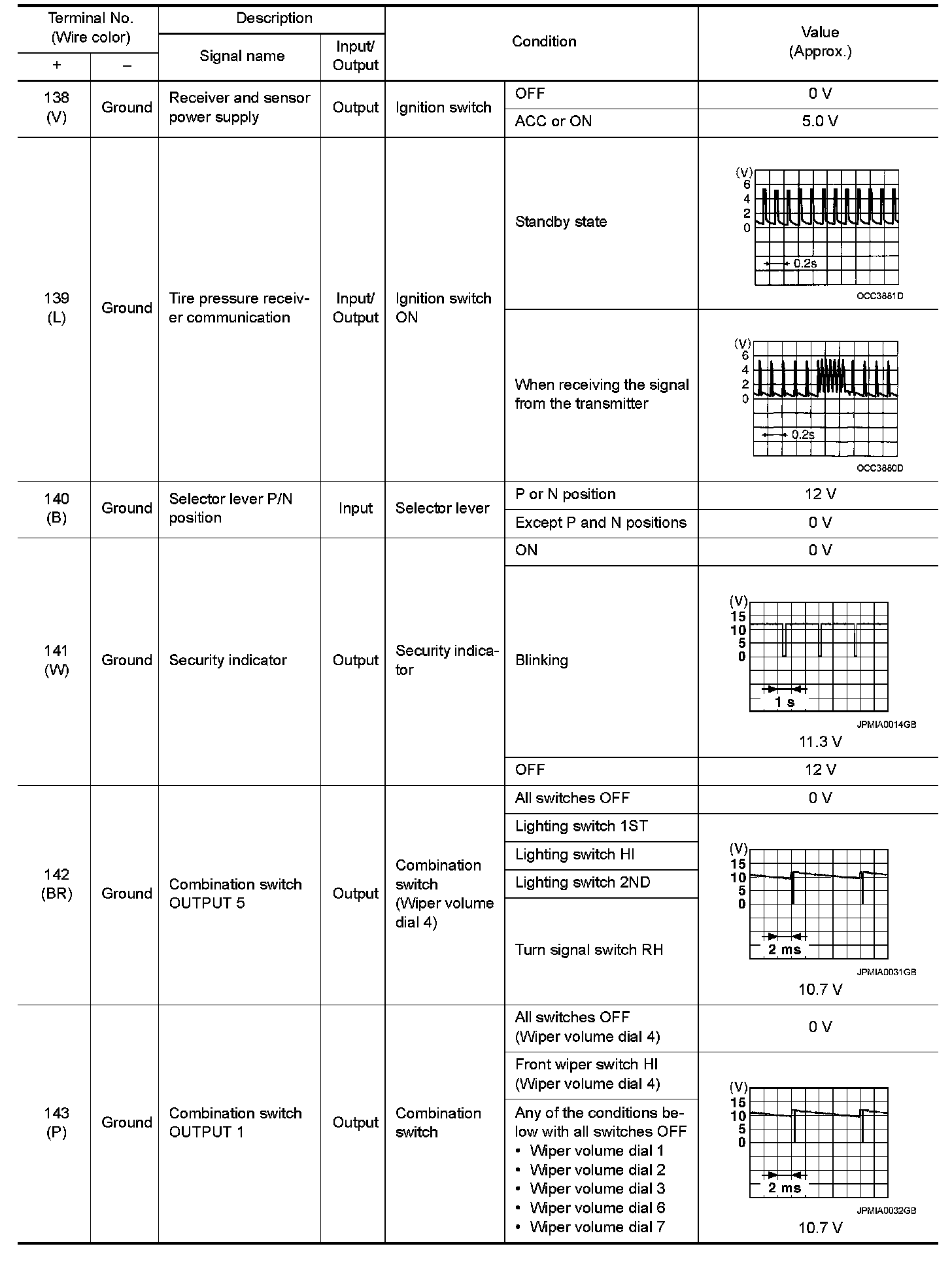 Pinout Values and Diagnostic Parameters