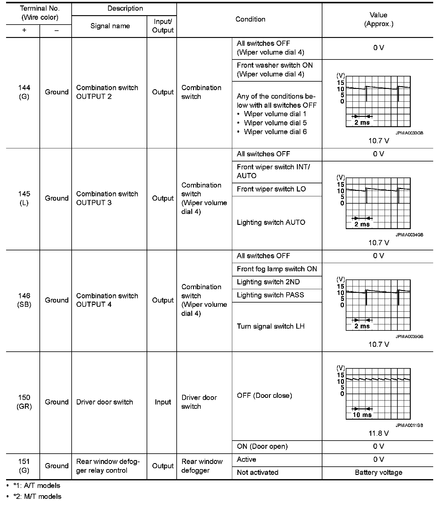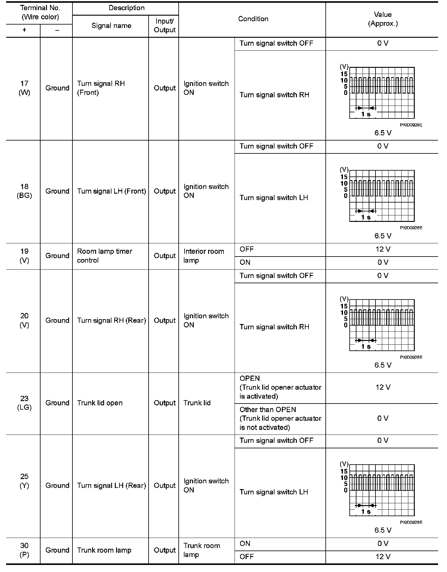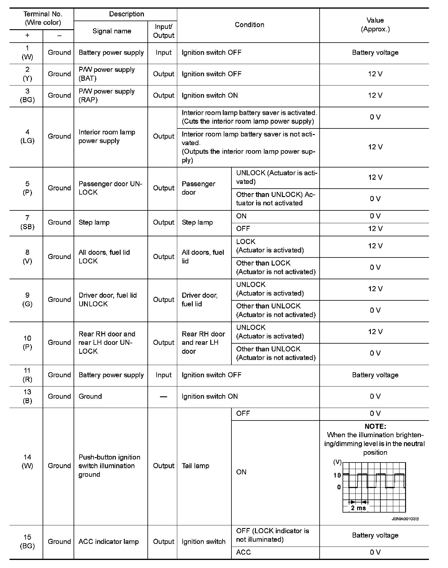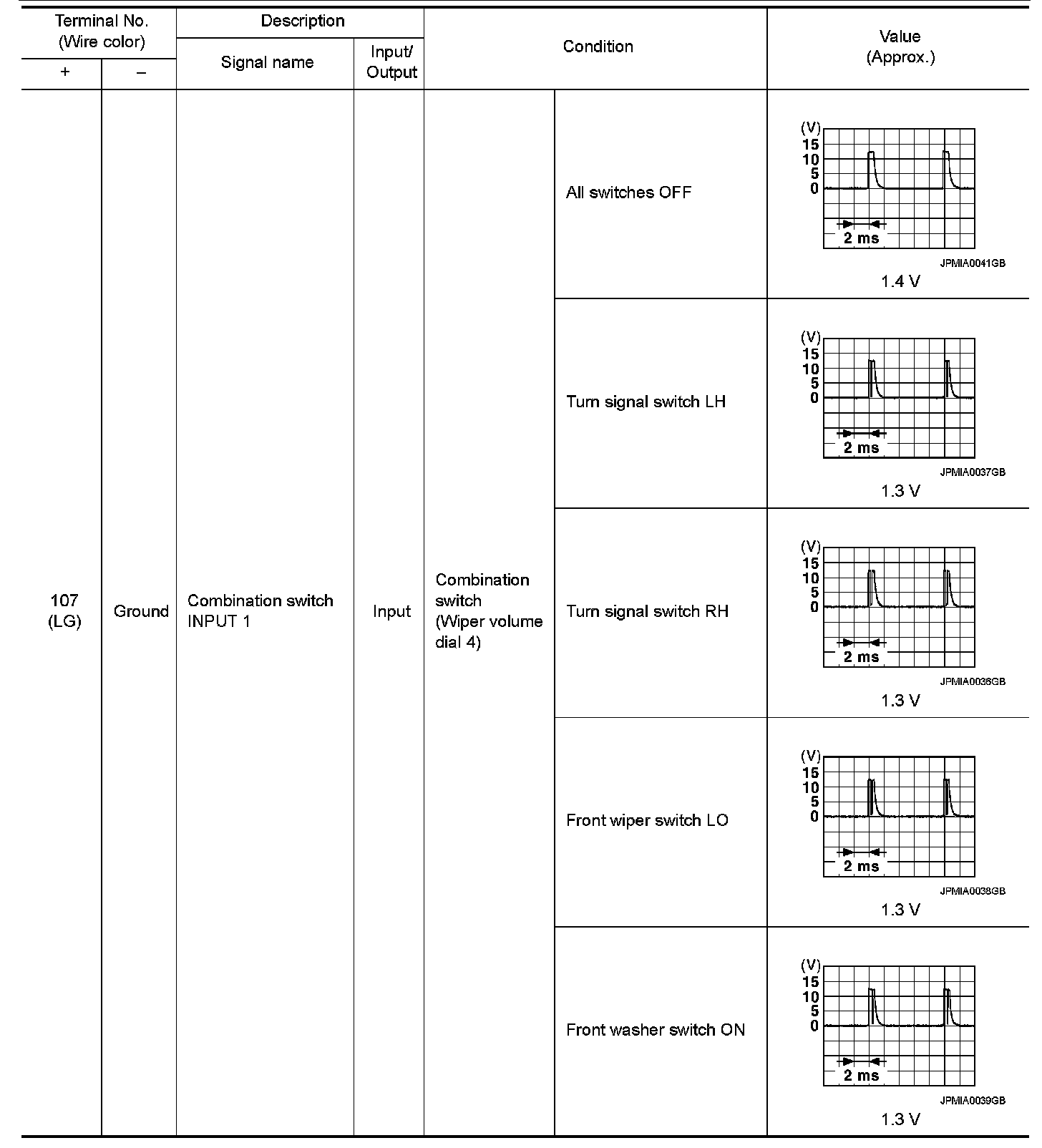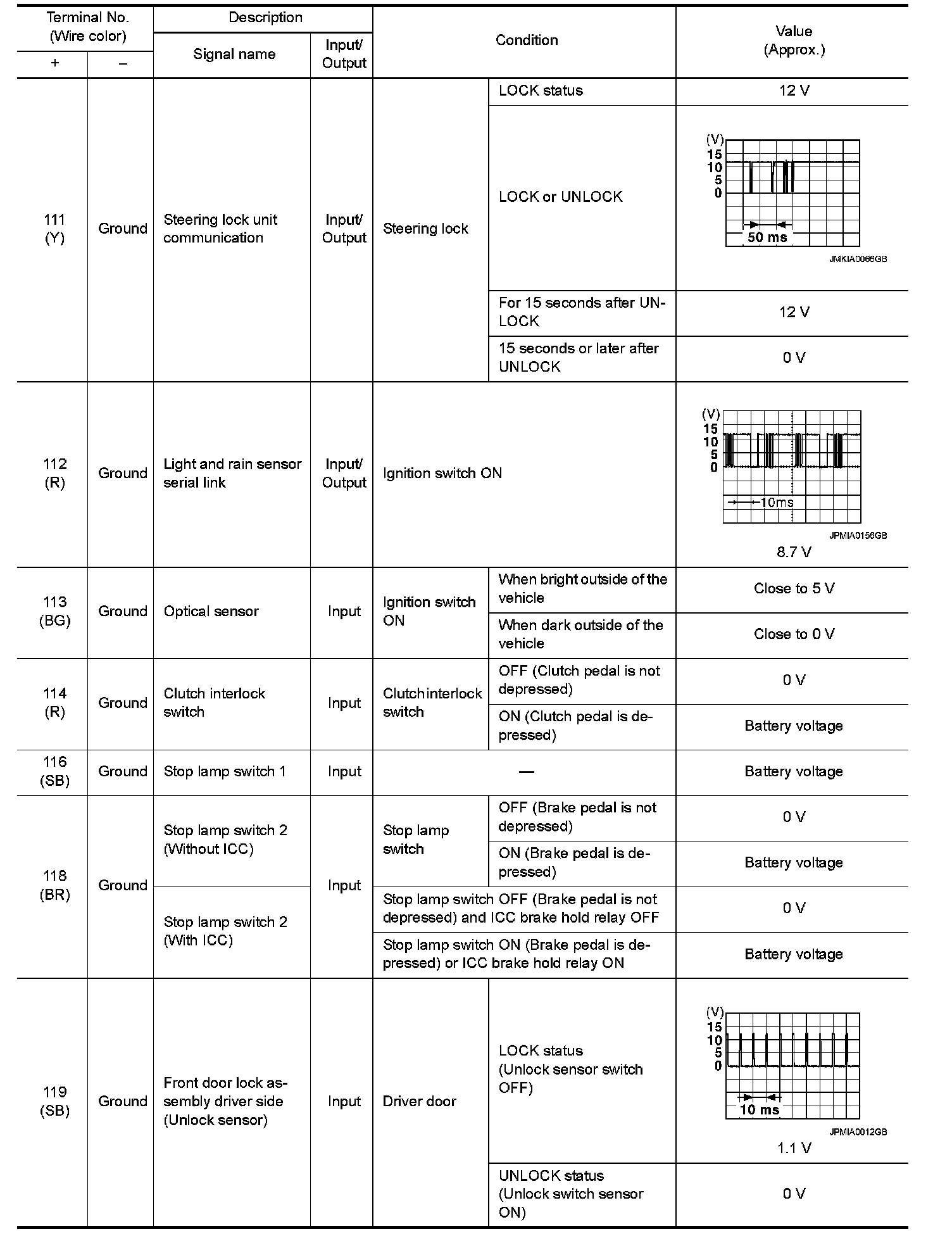 Pinout Values and Diagnostic Parameters
