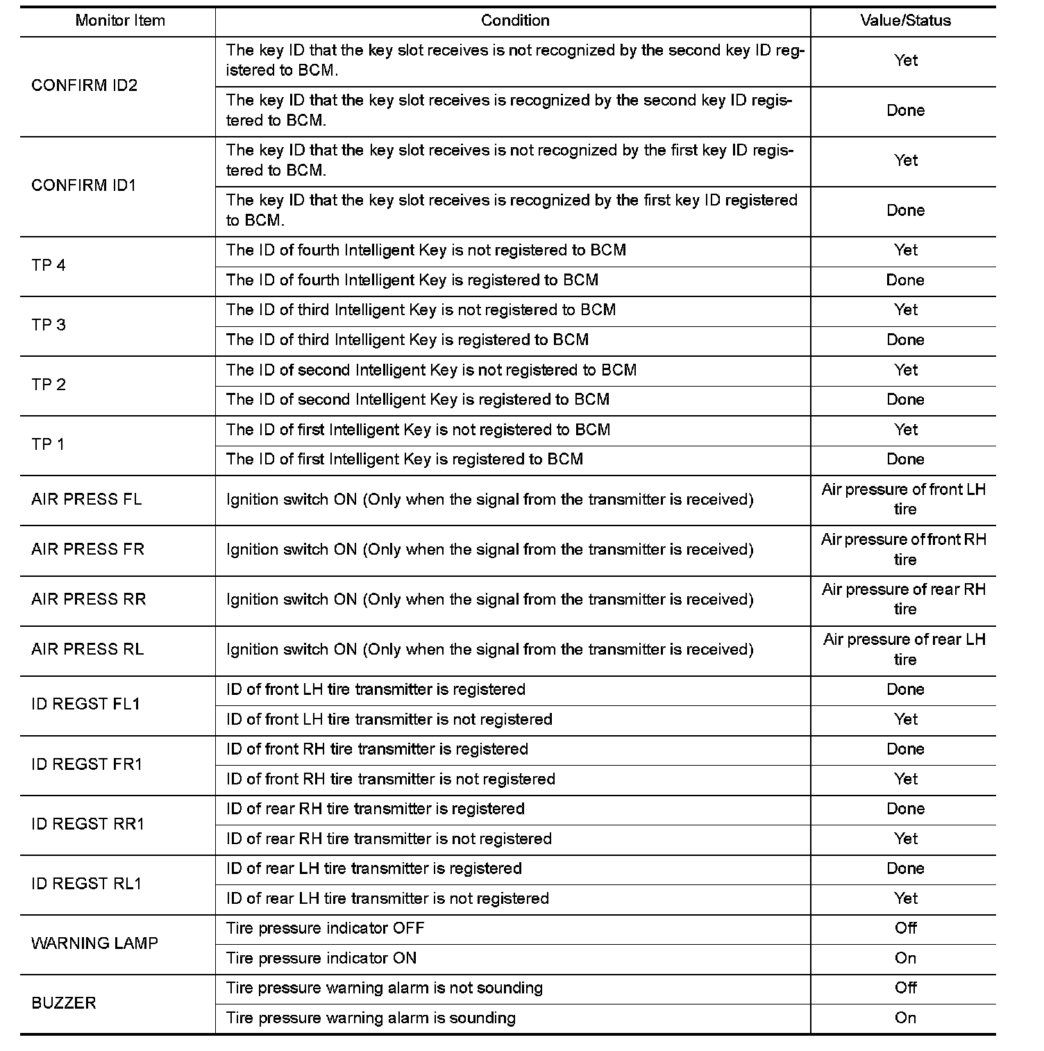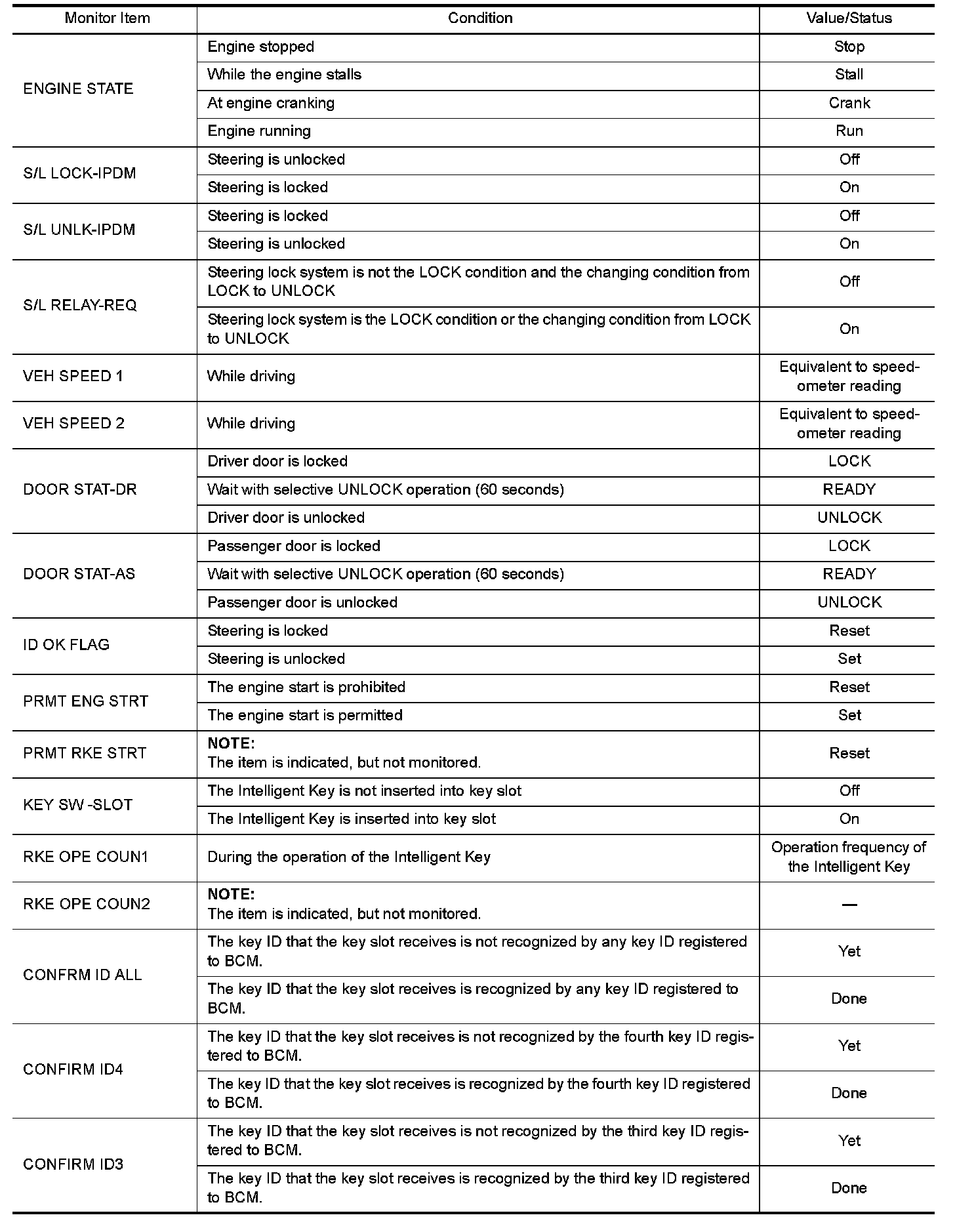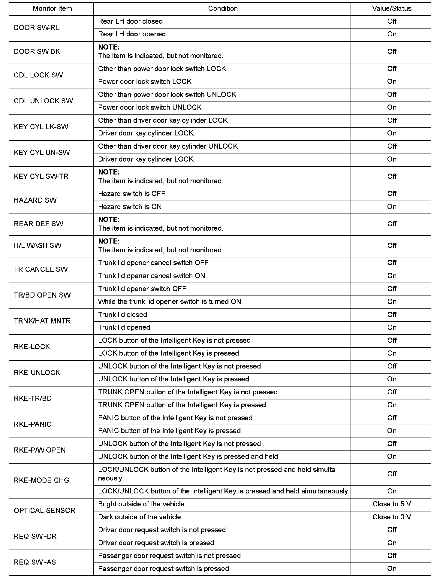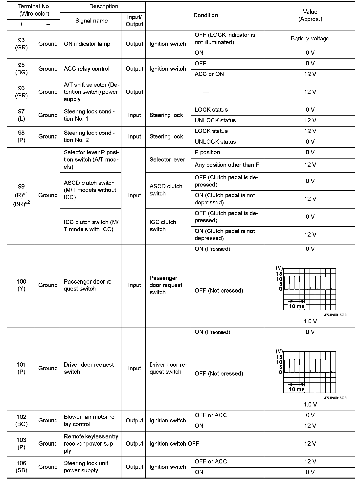 Pinout Values and Diagnostic Parameters