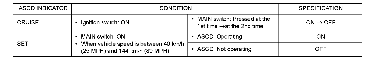 Check ASCD indicator under the following conditions.