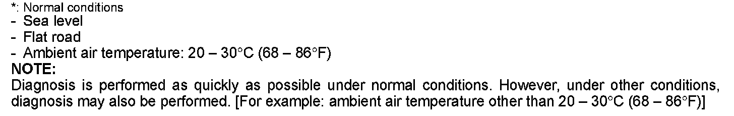 Diagnosis is performed as quickly as possible under normal conditions. However, under other conditions, diagnosis may also be performed. [For example: ambient air temperature other than 20 � 30�C (68 � 86�F)]